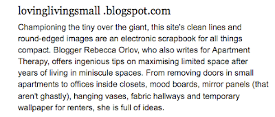 Fellow AT contributor @JennyButler tweeted that loving. living. small. was mentioned in an article in the Sydney Morning Herald and picked up on The Age. The piece is about design blogs and - wow - what a truly fab group to be part of! The write up on my little blog was super sweet and well, wow, we just can't believe the company we are keeping ::